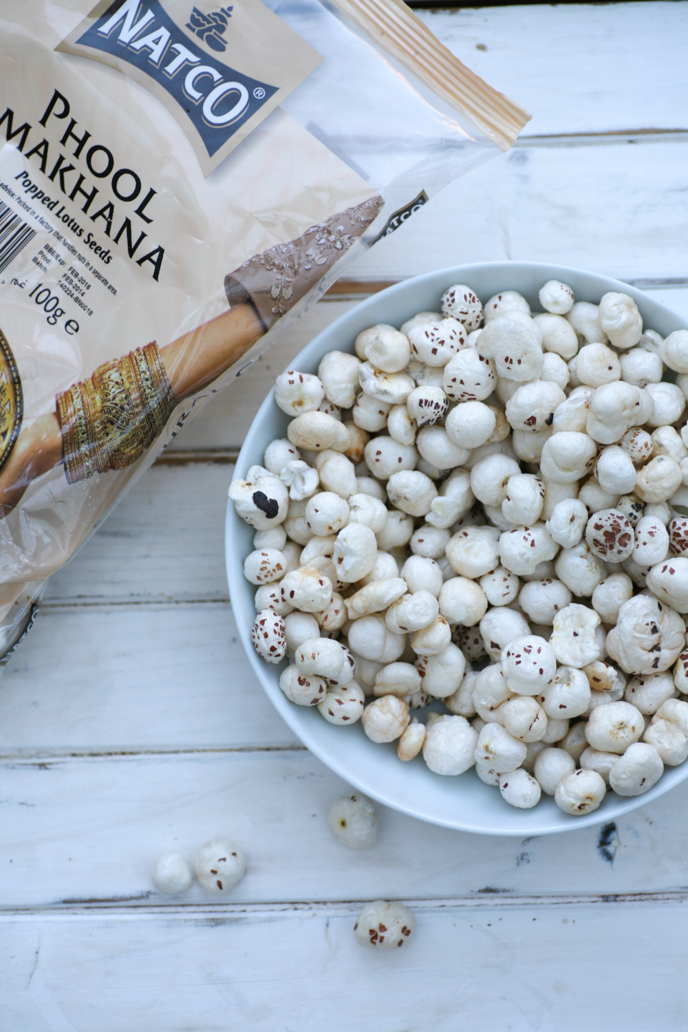 Continuing on the theme of providing an Indian dish for you each week, through the month of June, as part of Curry for Change, I hereby introduce a curry that I imagine many of you have never come across before – Lotus Seeds – otherwise known in India, as Phool Makhana. When Natco foods sent me a huge box of goodies for me to create a dish as part of a competition for food bloggers, (more about this click here from last weeks post), a large packet of phool makhana – popped lotus seeds – definitely stood out. They look very similar to popcorn or little cotton balls.