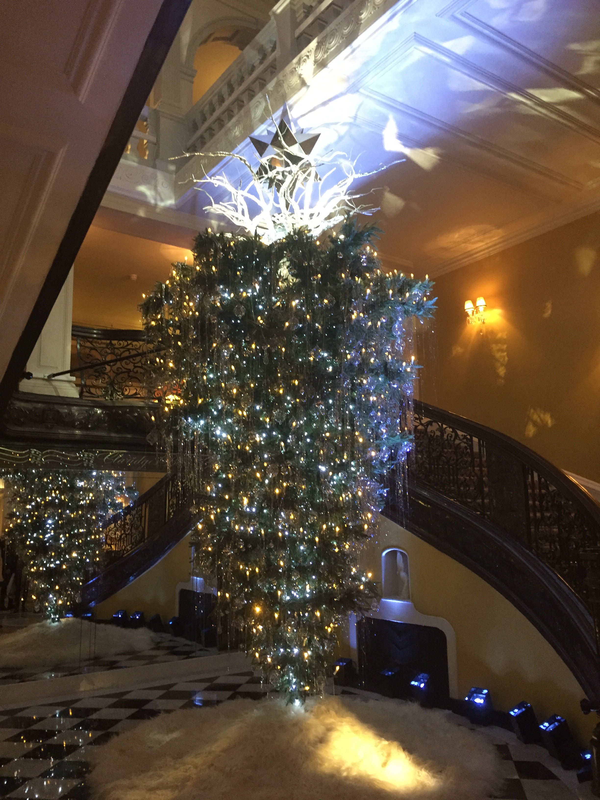 and the Karl Lagerfeld tree in Claridges Hotel was so impressive and rather original being turned on its head, reminiscent of a silver stalactite. It was rather magical, whimsical with a touch of Dr Seuss.