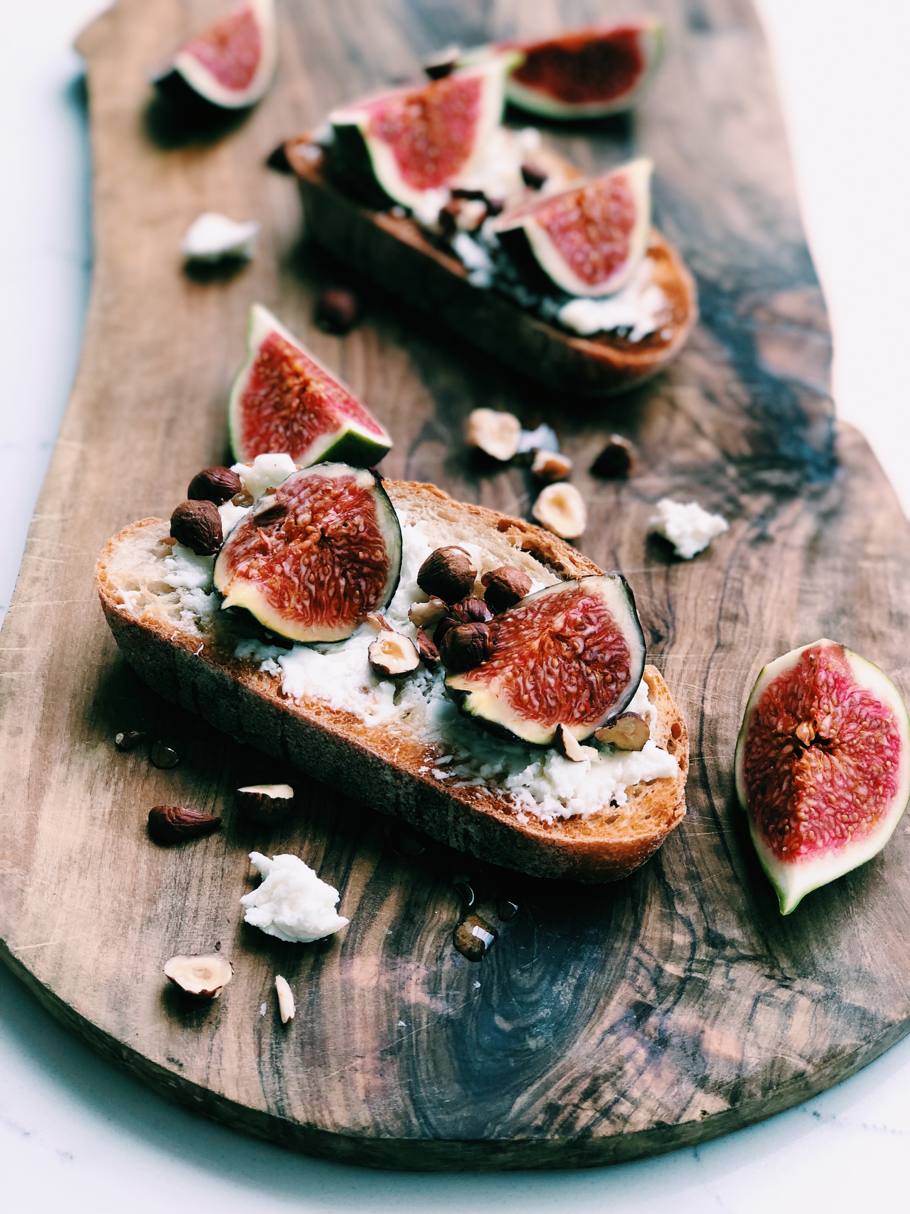 Toasted Sourdough with Soft Goats Cheese, Fig, Hazelnut and Honey