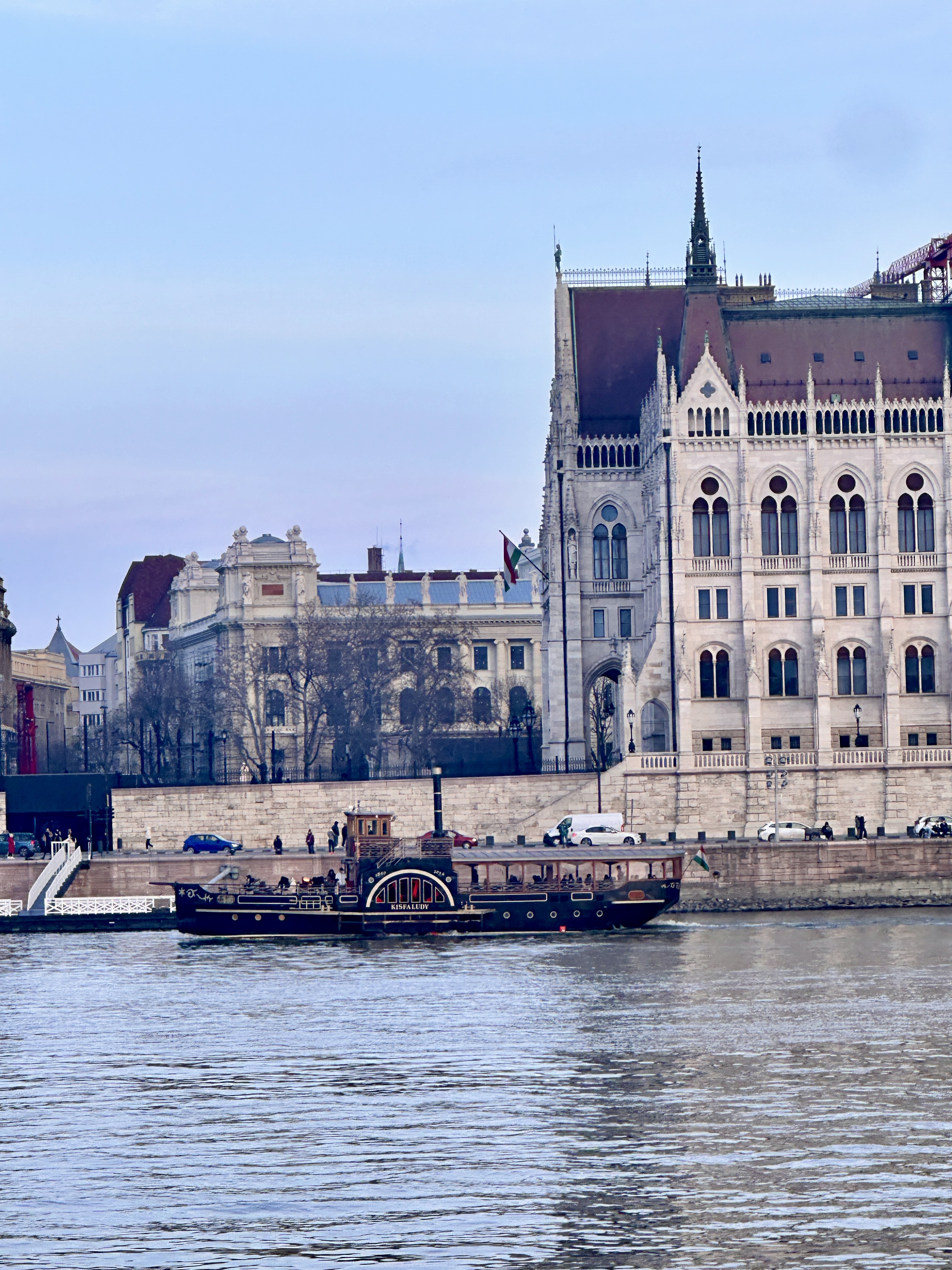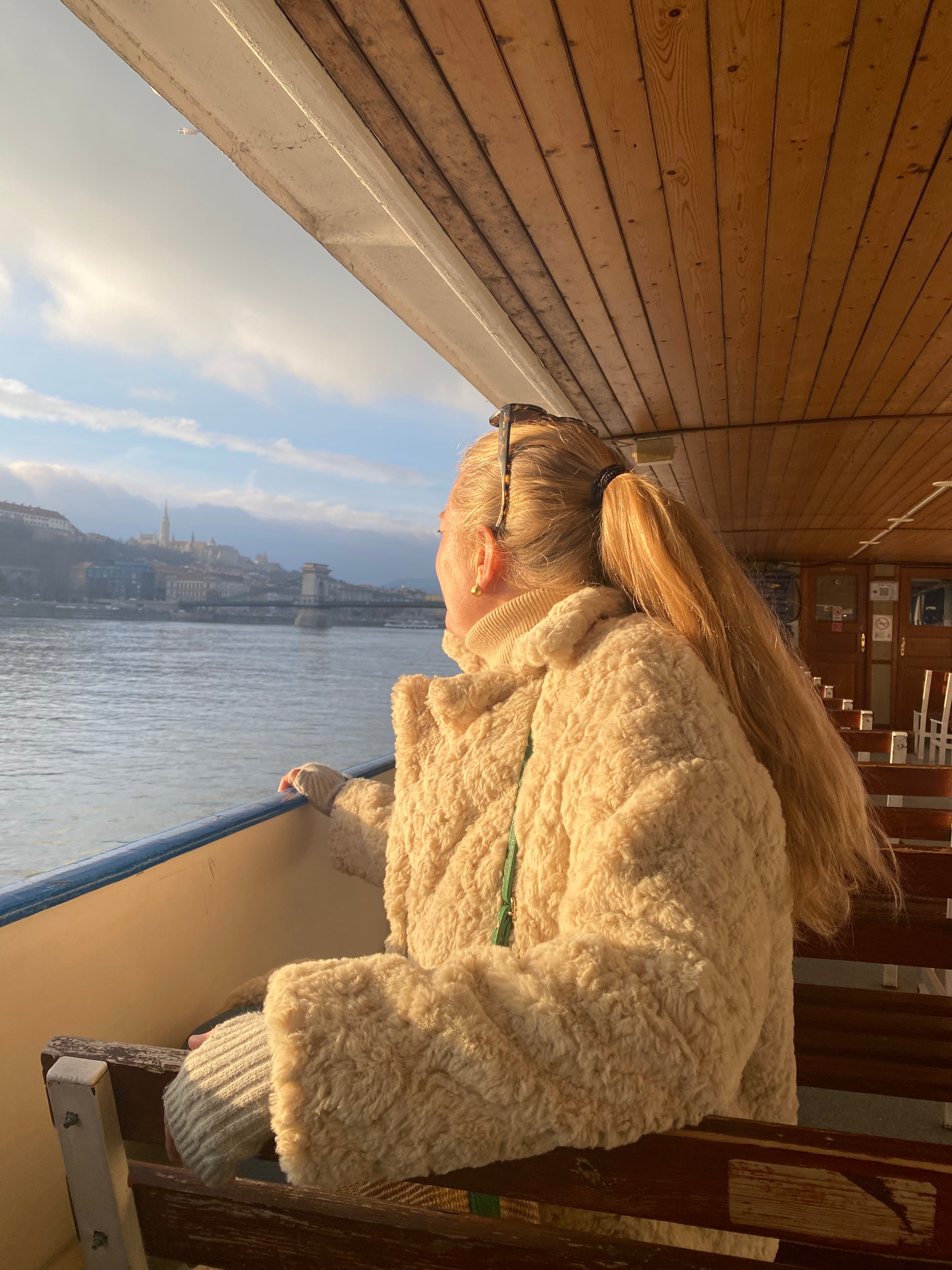 Stroll along the Danube and you will find many companies offering river cruise. We found one that was about to leave so secured some tickets and headed down the river to watch the sunset. We sat above deck initially all wrapped up warm and then when the weather dipped dramatically we headed downstairs to the warmth to watch the world go by. The cruise offered glasses of bubbly and orange juice and lasted around 45 minutes.