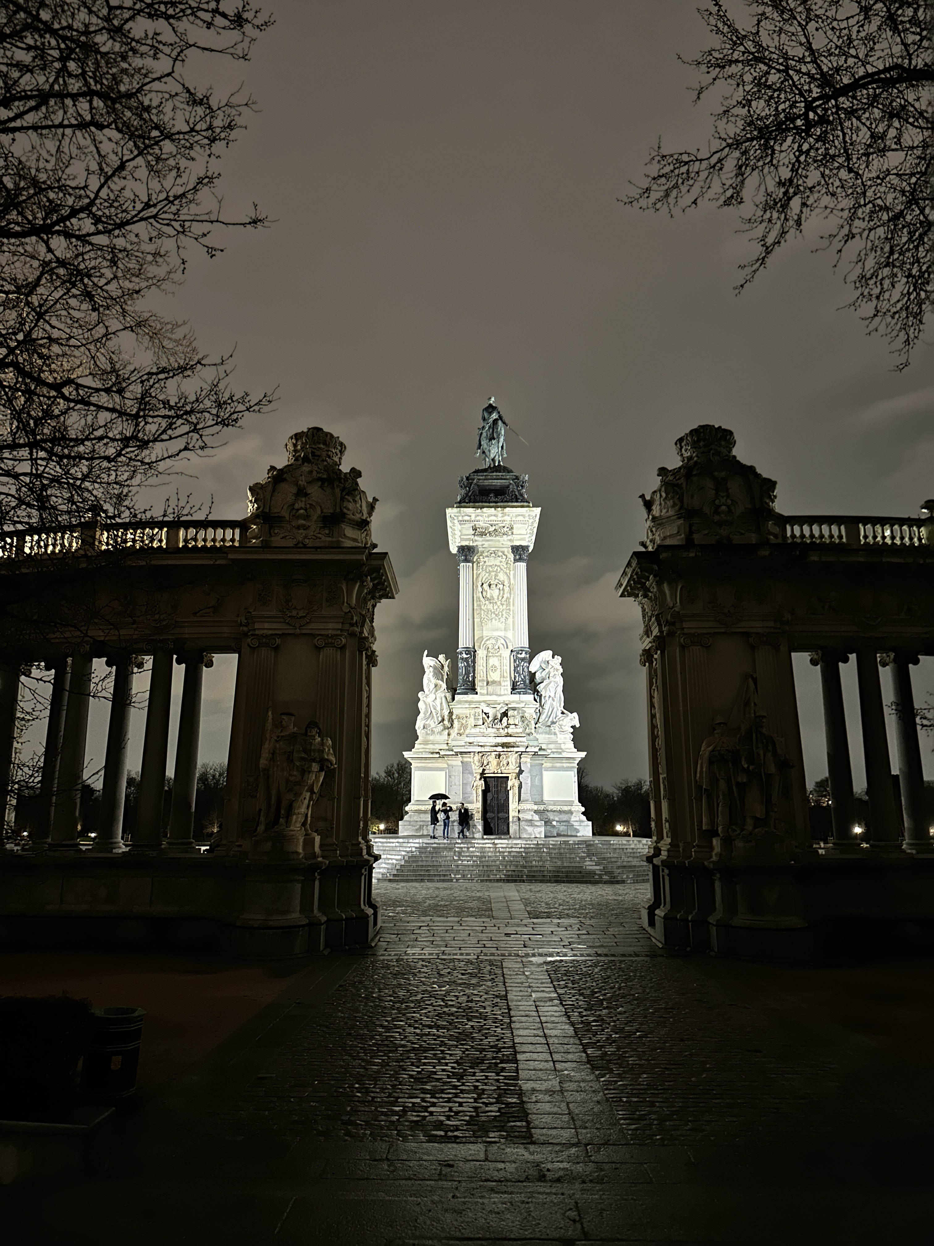 I’d been to Madrid fleetingly in the past, but never really got to experience what the city had to offer. It was therefore, with great excitement, that my husband and I decided to spend a long weekend, catching up with good friends, enjoying the local food scene, whilst admiring the incredible art scene that the city has to offer. Unbeknown to me, it also has the most stunning 125-hectare park in its centre called ‘El Retiro’, which is a UNESCO World Heritage. It is beautifully laid out with a boating lake, glass-encased ‘Palacio de Cristal’ and the Prado museum and botanical garden near by. It’s great for walking, cycling, jogging around and I imagine on a balmy summers evening is perfect for a picnic under one of the trees. I loved the calm serenity of the place and the fact that its design had clearly been well thought out. It even felt safe walking through it after nightfall (see photo below). I think it is so important to have beautiful green spaces in cities for locals and tourists to fully enjoy.