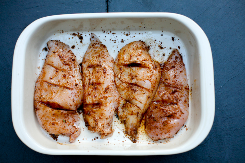 1. Trim the fat of the chicken thighs and then mix in a bowl with the chopped onions, olive oil, ginger, cinnamon, saffron, lemon juice, water, pepper and salt. Leave to marinate in the fridge for over an hour – or overnight if you are really well organised. I wasn’t so left it in the fridge for a couple of hours!