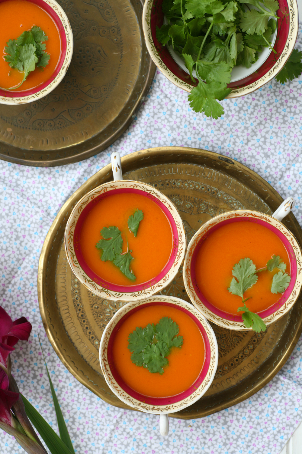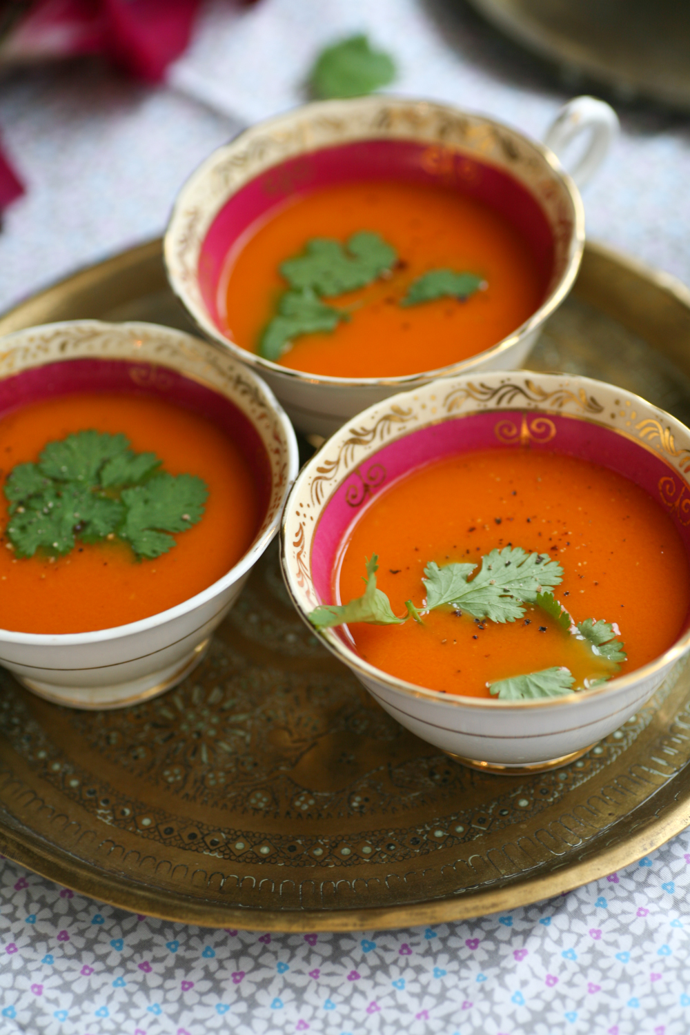 4. Pour into cups and garnish with some fresh coriander and black pepper.