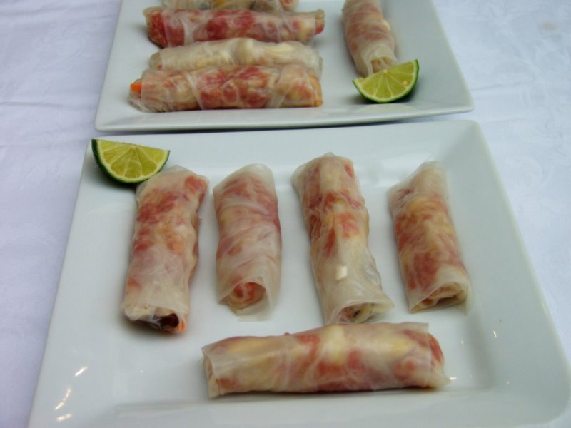 2. Cook the rice noodles according to the packet (normally I boil them for 4 mins) and drain. Run cold water through them and place to one side. When ready to serve pour boiling water through it once, drain and place in a serving bowl.