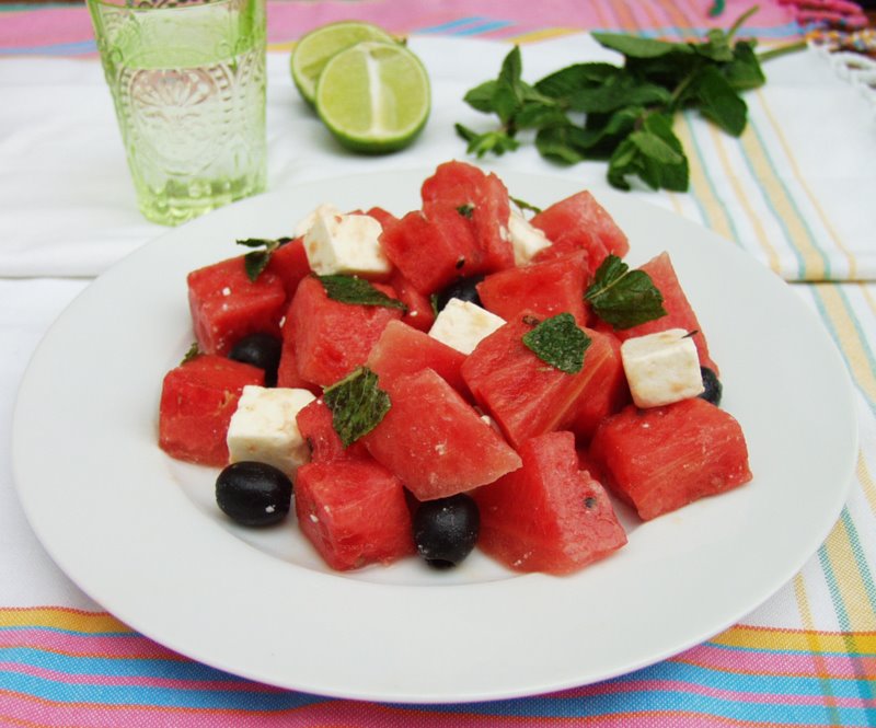 Watermelon, Feta, Black Olive, Mint and Lime Salad