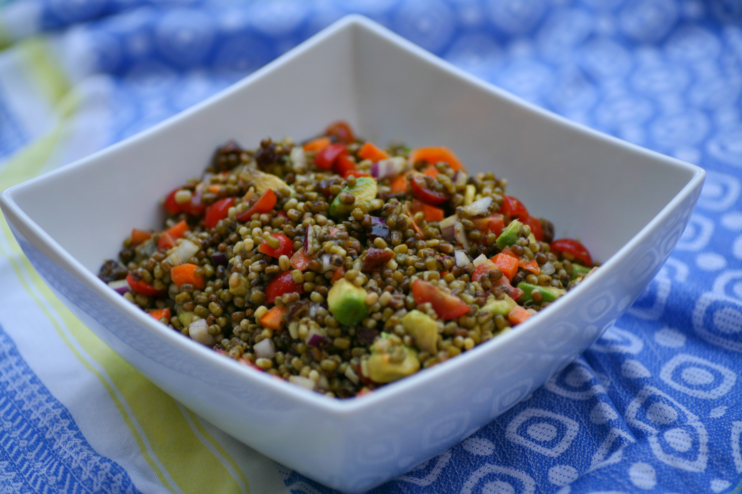 Moroccan Giant Couscous Salad and a Mung Bean, Carrot and Feta Salad