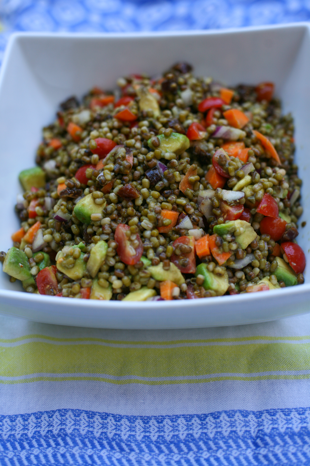 Mung Bean, Date and Avocado Salad with a Soy Miso Dressing