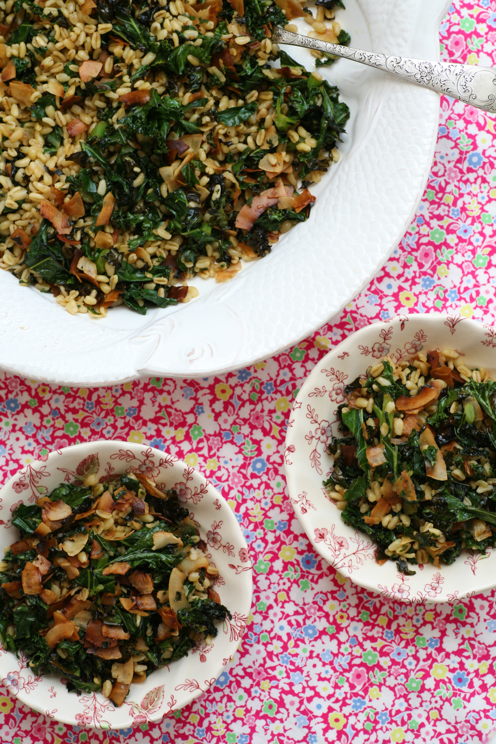 Kale, Coconut and Durum Wheat Salad with a Sesame Oil Dressing