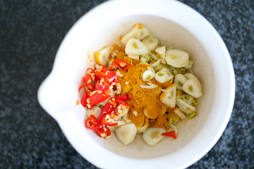 I don’t bother to take out the kaffir lime leaves or lemongrass when serving. I quite like the rustic, throw it together look. I also find the dish is a great pick me up if you are feeling a little under the weather. The ginger, turmeric, garlic, spinach and chilli really flood the body with so much goodness that a sense of wellbeing hits you almost immediately.