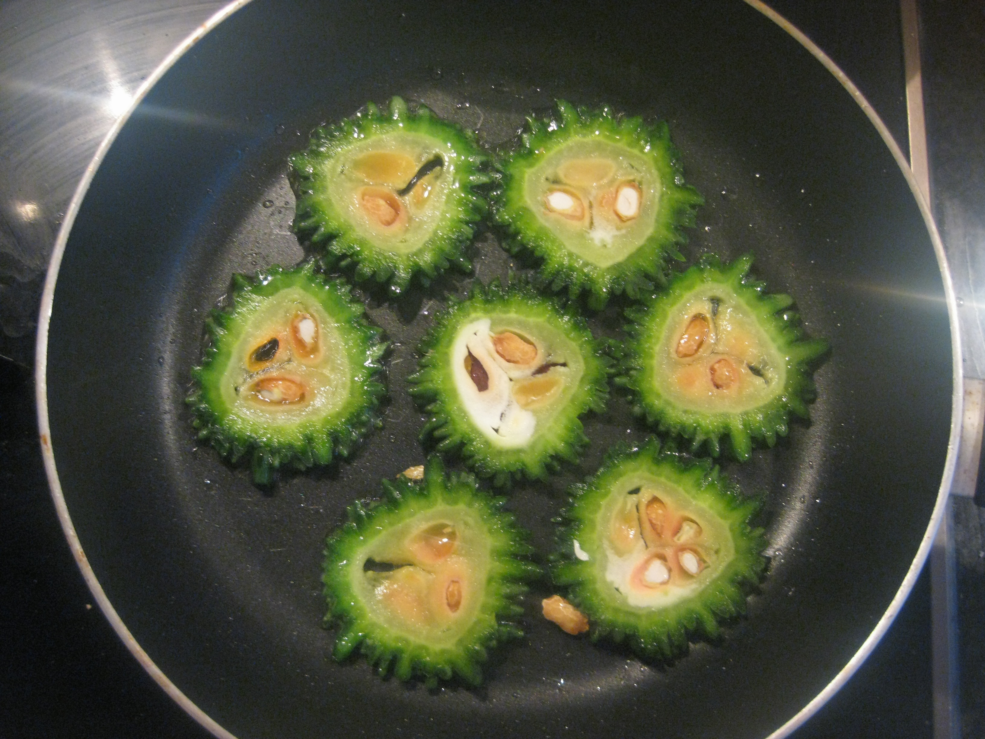 1. Heat a couple of tablespoons of vegetable oil in a fairly deep frying pan or karahi. On a low heat add the prawns, in stages if your pan is on the small side, so as to seal them. They will curl up slightly and take on a vibrant pinkish hue. After a minute or so turn them over so that both sides are sealed. Then turn them on to their backs so as the top side is also cooked. Remove from the pan and place on a plate to one side, whilst you finish cooking the remaining prawns.
